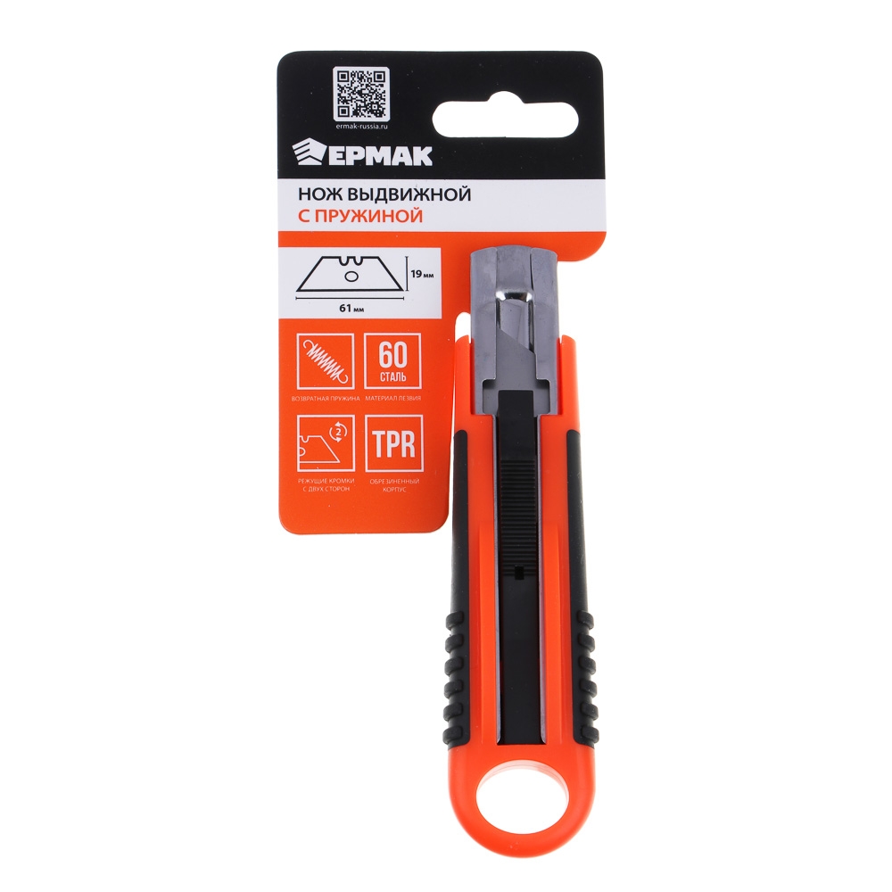 ЕРМАК Нож выдвижной с пружиной, PS+TPR, 61x19x0.6мм, арт.1