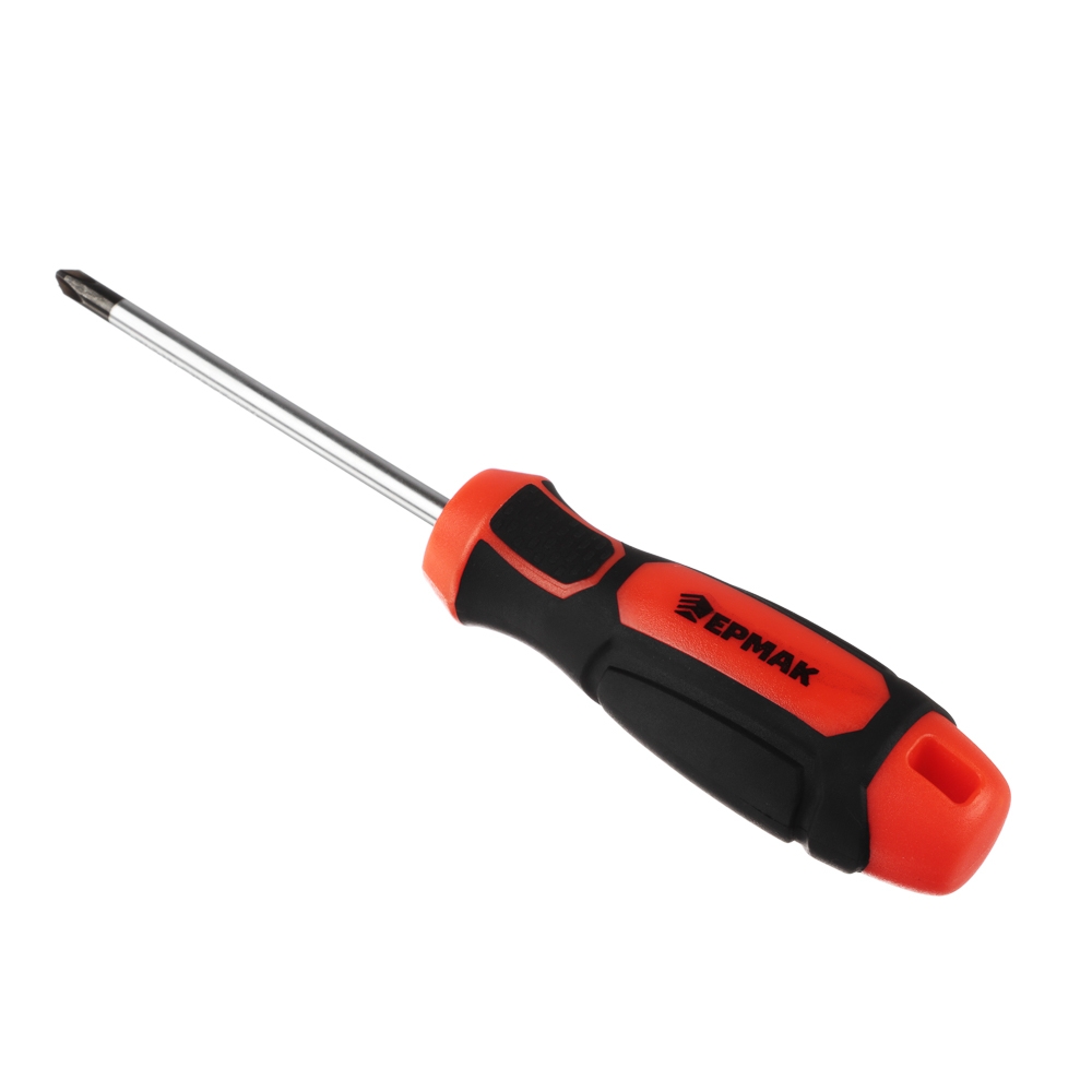 ЕРМАК Отвертка с прорезиненной ручкой PH2 6х100мм, намагниченный шлиц