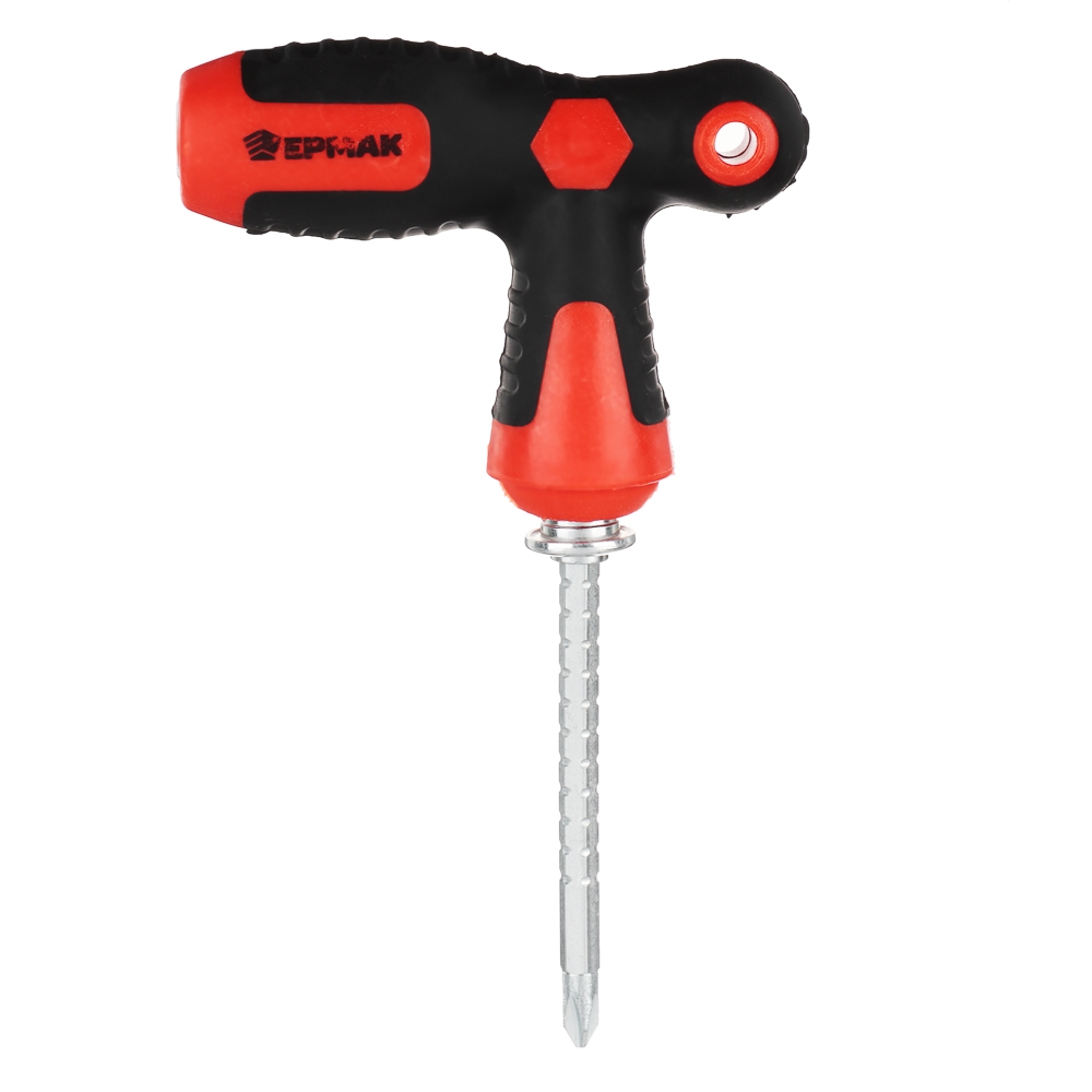 Отвертка телескопическая двусторонняя Т-образная ЕРМАК с двухкомпонентной рукоятью и фиксатором – это удобный функциональный инструмент для работы с крепежом и резьбовыми соединениями с плоским и крестообразным шлицем. Длину рабочей части можно регулировать, поэтому инструмент отлично подойдет для работ в тесных условиях. Эргономичная рукоять не натирает ладонь и не выскальзывает из рук. Отвертка из углеродистой стали обладает высоким запасом прочности, устойчива к деформации и коррозии.