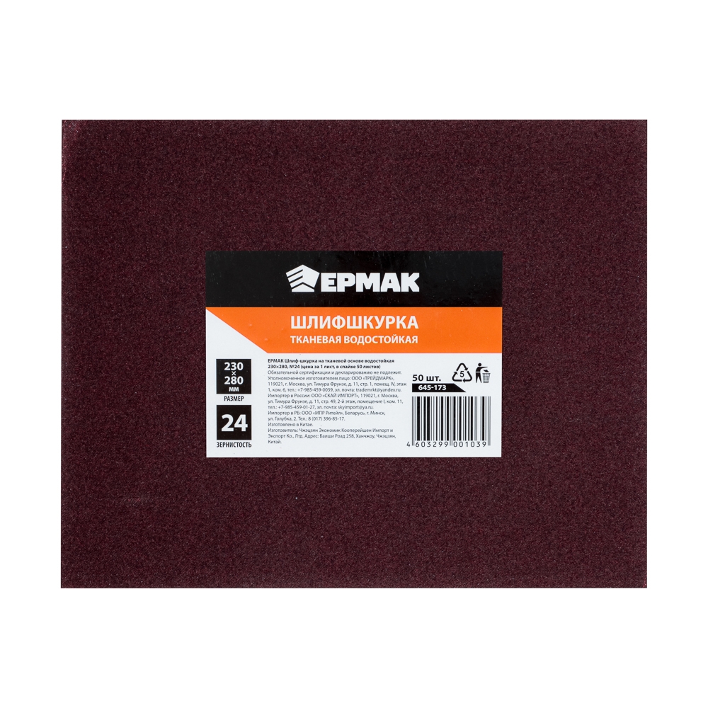 ЕРМАК Шлиф-шкурка на тканевой основе водостойкая 230x280 №24 (цена за 1 лист, в спайке 50 листов)