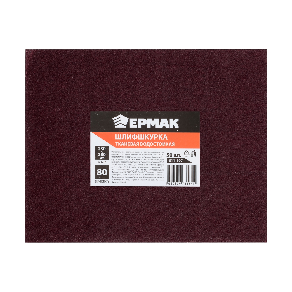ЕРМАК Шлиф-шкурка на тканевой основе водостойкая 230x280 №80 (цена за 1 лист, в спайке 50 листов)