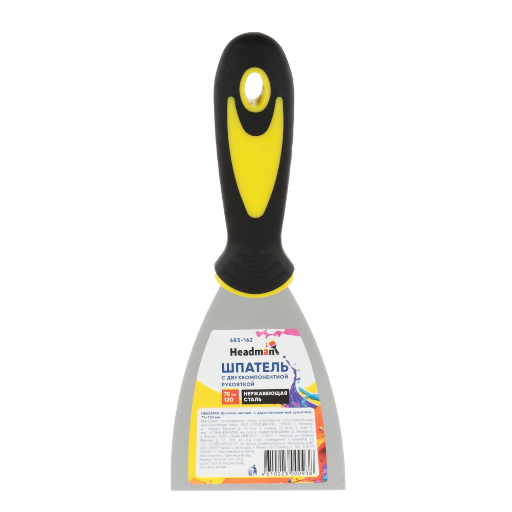 Фасадный шпатель с от бренда HEADMAN с двухкомпонентной рукояткой предназначен для отделки поверхностей внутри и снаружи помещений. Используется для нанесения и выравнивания по поверхностям штукатурки, шпатлевки и других строительных растворов, заделки трещин и швов. Фасадный шпатель оснащен эргономичной пластмассовой ручкой, с рифлением, которая обеспечивает надежный хват инструмента при использовании, в том числе, в грубых строительных перчатках.
