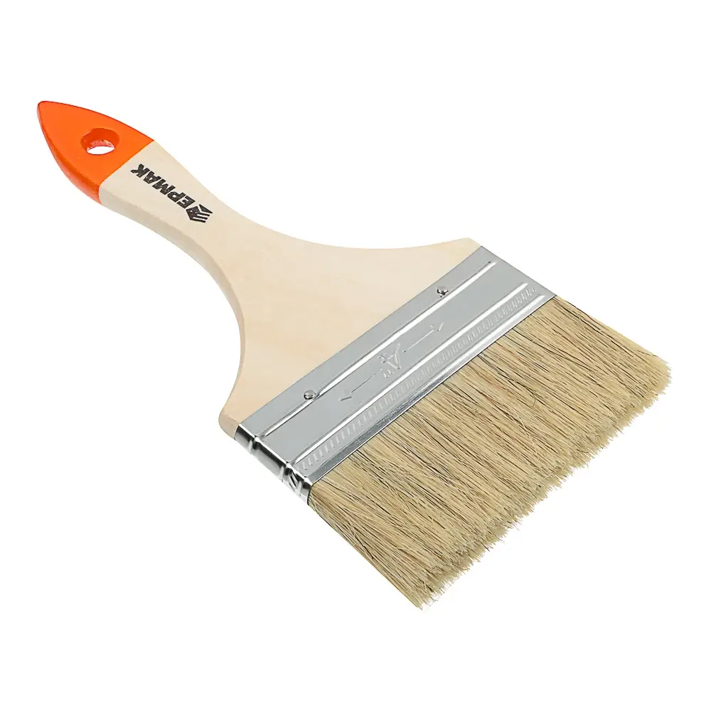 Плоская малярная кисть ЕРМАК "Бейсик" с натуральной щетиной 100 мм предназначена для проведения малярных работ в строительстве. Щетина прекрасно впитывает и отдает краску, сохраняет свои свойства при повторном использовании. Особенно хорошо подходит для работы с масляными красками, лаками, а также с антисептиками. Щетина не осыпается при использовании.