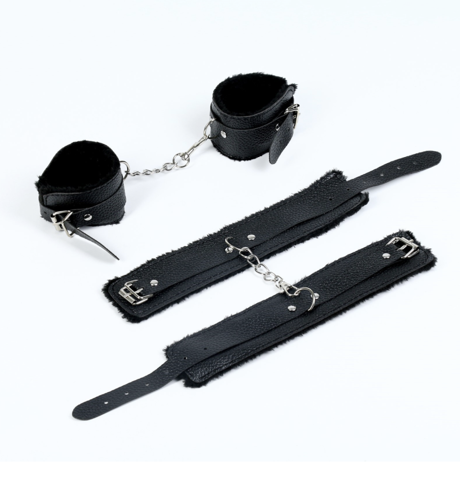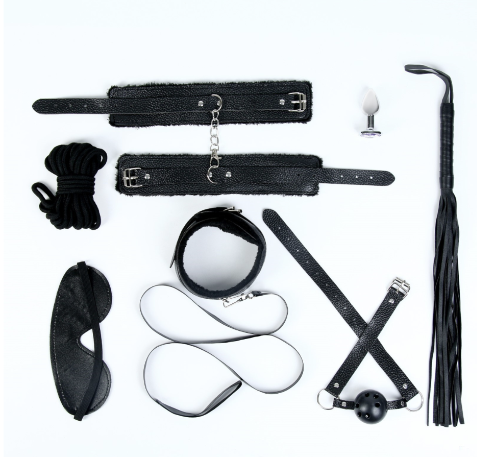 Эротический БДСМ набор Оки-Чпоки, металл, кожа, набор 8 предметов, черный
