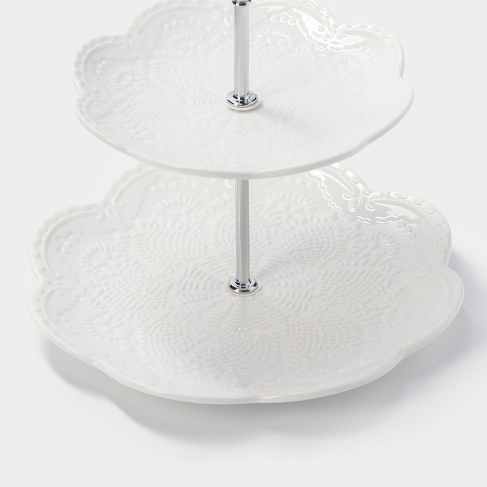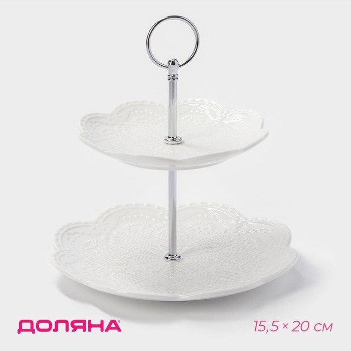 Этажерка - фруктовница круглая Доляна «Сьюзен», 2 яруса, 15,5×20 см, высота 21 см, фарфор, цвет белый
