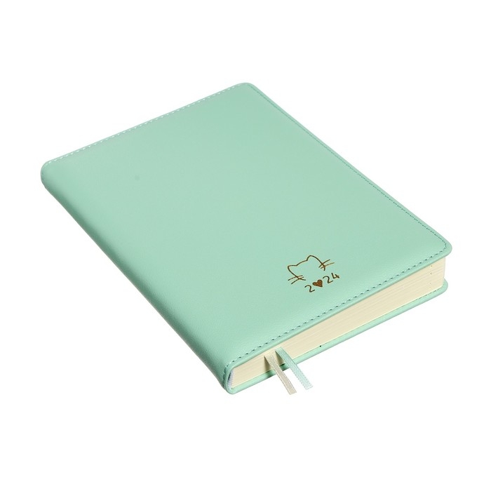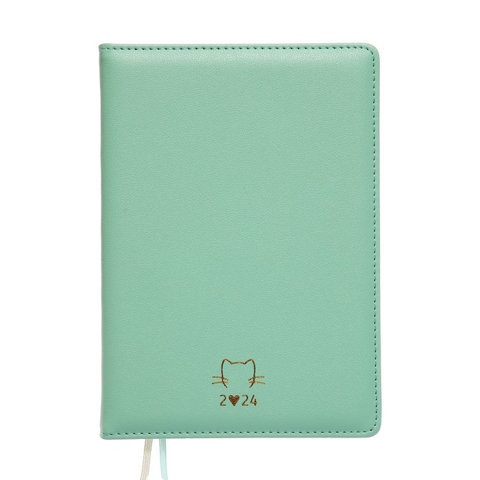 Ежедневник датированный 2024 A5 176 листов, deVENTE.I Love Cat, твёрдая обложка из искусственной кожи, тиснение фольгой, ляссе, кремовый блок 70 г/м2, мятный