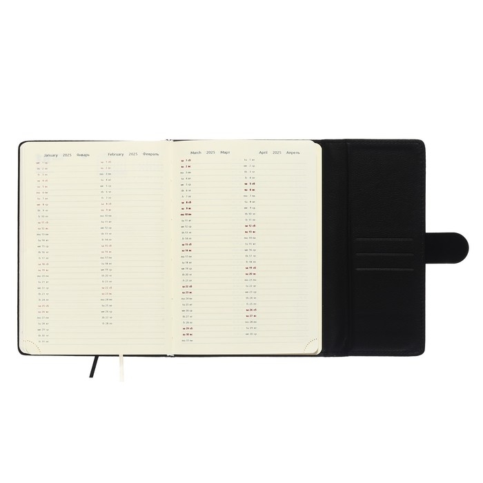 Ежедневник датированный 2025 года, A5, 168 листов в линейку, кожзам "Небраска", золотой срез, черный