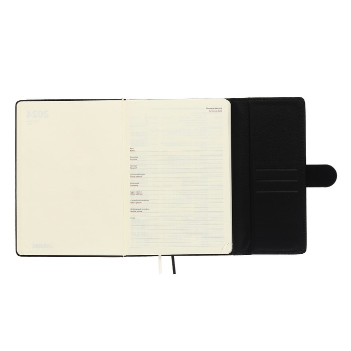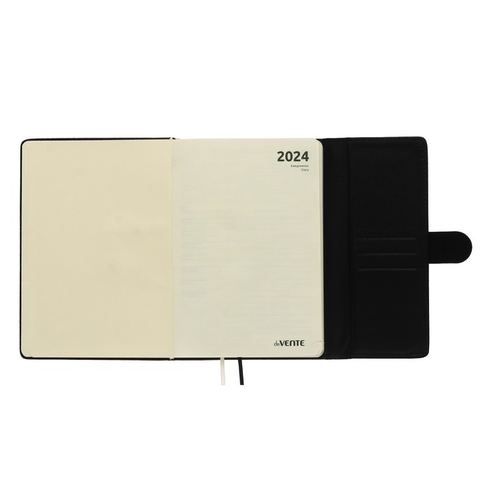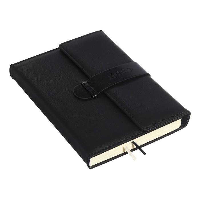 Ежедневник датированный 2024 A5 176 листов, deVENTE.Tudor, твёрдая обложка из искусственной кожи, ляссе, кремовый блок 70 г/м2, чёрный