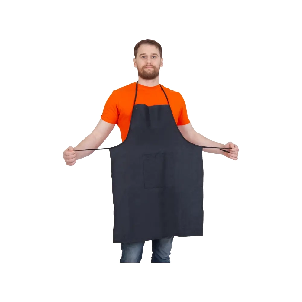 Фартук х/б применяется в различных отраслях производства, защищает от загрязнений. Нагрудник – цельнокроеный, замкнутая бретель на шее. К боковым углам притачана тесьма.