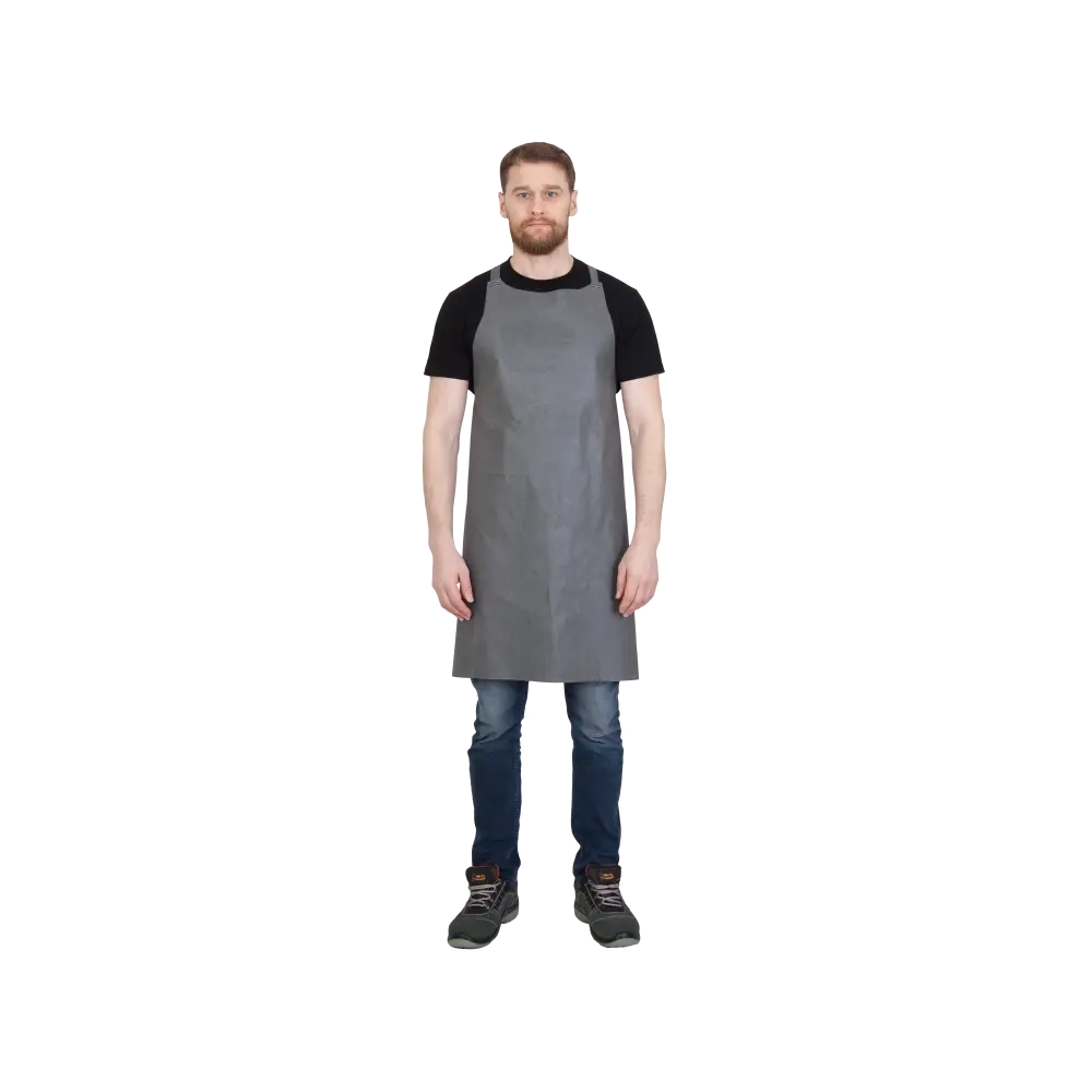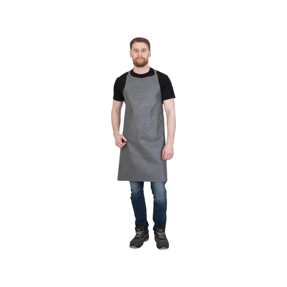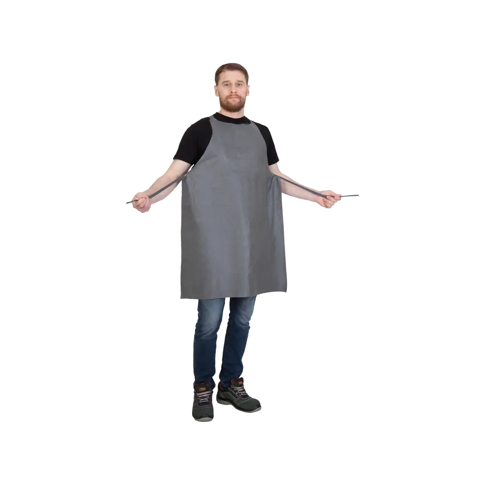 Фартук защищает от кислот, щелочей, нефтепродуктов. Нагрудник фартука – цельнокроеный, сзади переходит в кокетку, к нижней части которой притачана эластичная лента. На линии талии к боковым углам притачана тесьма.