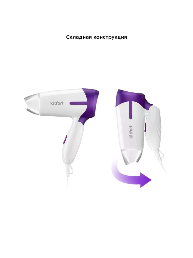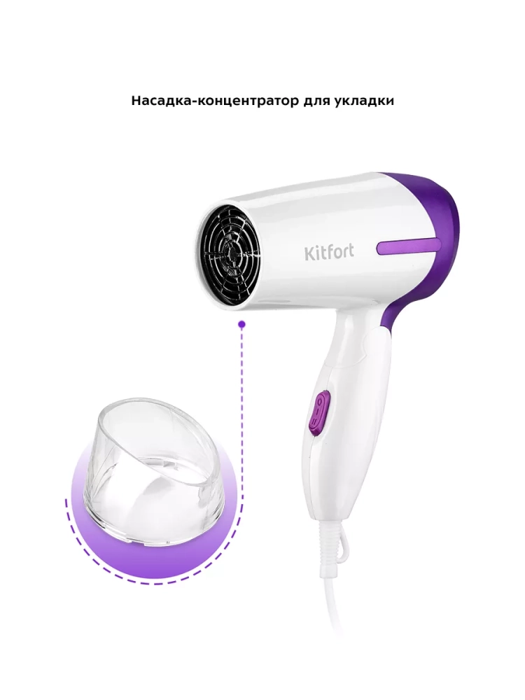 Фен Kitfort КТ-3209 поможет быстро высушить ваши волосы в домашних условиях. Модель имеет насадку-конденсатор, которая образует направленный поток воздуха. Это обеспечивает равномерную, безопасную и эффективную обработку локонов по всей длине. Корпус фена выполнен из пластика и удобно лежит в руке. Шнур оснащен защитой от перегиба с петлей, что увеличивает срок службы и позволяет удобно хранить фен на крючке. Фен КТ-3209 имеет складную конструкцию, что делает его компактнее и удобнее при хранении. Устройство можно брать с собой в поездки, путешествия и рабочие командировки.