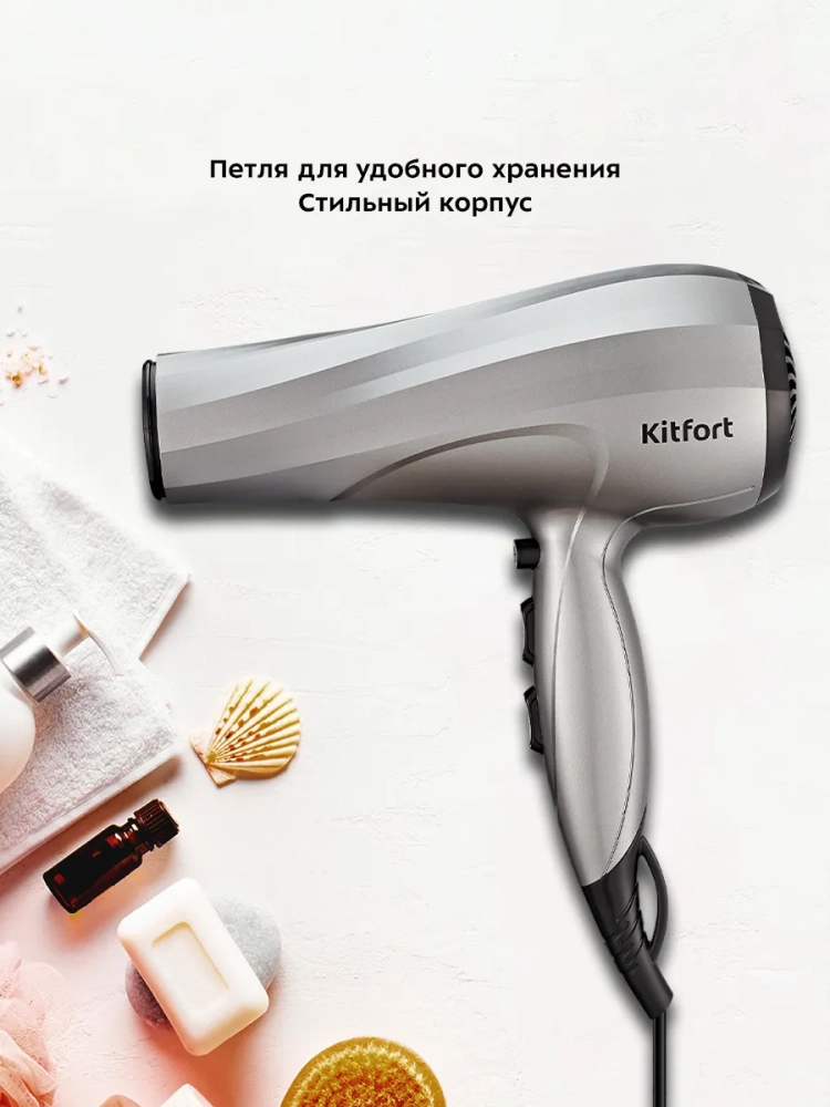 С помощью фена Kitfort КТ-3229 вы сможете быстро высушить волосы и сделать красивую укладку. Фен выдает направленный поток воздуха, поэтому волосы с ним сушить просто и удобно. КТ-3229 позволяет регулировать температуру и скорость потока воздуха. Вы можете установить воздух без подогрева, теплый или горячий воздух, а также выбрать нужную скорость потока воздуха. Отдельная кнопка «Холодный воздух» позволяет в любой момент включить холодный воздух из любого температурного режима. Корпус фена выполнен из пластика, эргономичная ручка фена удобно лежит в руке. Насадка в комплекте направляет поток воздуха именно на прядь волос, позволяя ей высохнуть намного быстрее, это облегчает процесс укладки. Фен оснащен петлей, которая позволяет хранить его на крючке.