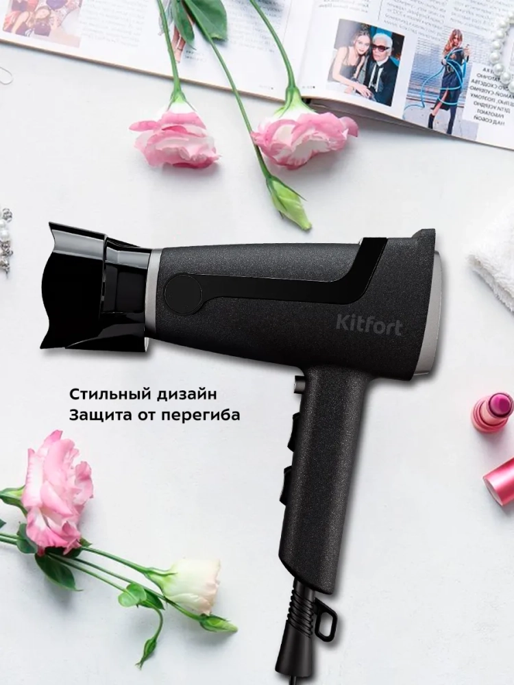 С помощью фена Kitfort КТ-3231 вы сможете быстро высушить волосы и сделать красивую укладку. Фен выдает направленный поток воздуха, поэтому волосы с ним сушить просто и удобно. КТ-3231 позволяет регулировать температуру и скорость потока воздуха. Вы можете установить холодный, теплый или горячий воздух, а также выбрать нужную скорость потока воздуха. Отдельная кнопка «Холодный воздух» позволяет в любой момент включить холодный воздух из любого температурного режима. Корпус фена выполнен из пластика, а эргономичная ручка фена удобно лежит в руке. Насадка-концентратор в комплекте направляет поток воздуха именно на прядь волос, позволяя ей высохнуть намного быстрее, что облегчает процесс укладки. Турбонасадка имеет внутреннюю подвижную часть, которая вращается за счет потока воздуха, тем самым создается пульсирующий поток воздуха. В результате пульсирующих потоков волосы сохнут быстрее. Выдвижная подставка позволяет устанавливать фен на поверхности. В таком положении вы можете хранить фен. На подставке вы можете включать фен и одновременно сушить волосы, установив его на достаточной высоте. При этом фен не нужно держать в руках, вы можете занять их расческой и средствами для укладки. Дополнительная петля на защите от перегиба позволяет хранить фен в подвешенном состоянии, на крючке.