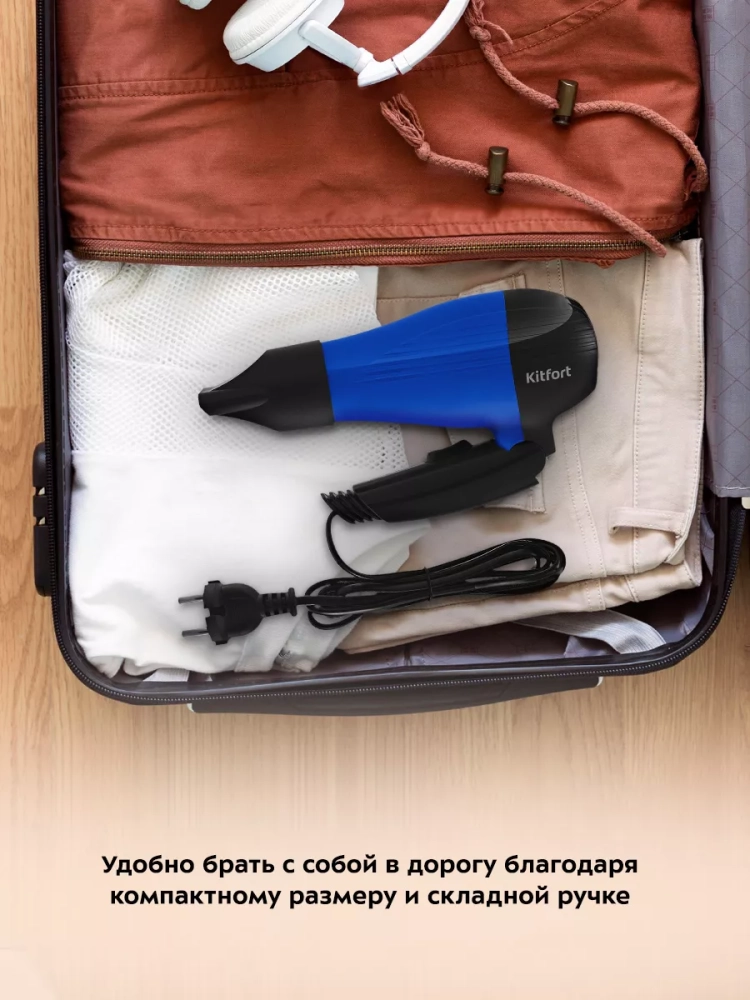 Фен КТ-3244 легкий и имеет складную ручку, что делает его компактным и удобным при хранении. В комплекте к устройству насадка-концентратор. Данную модель удобно брать с собой в поездки, путешествия и рабочие командировки.