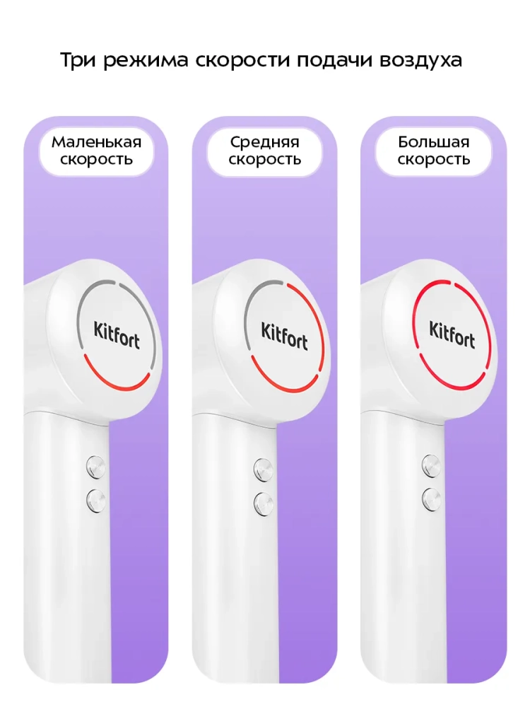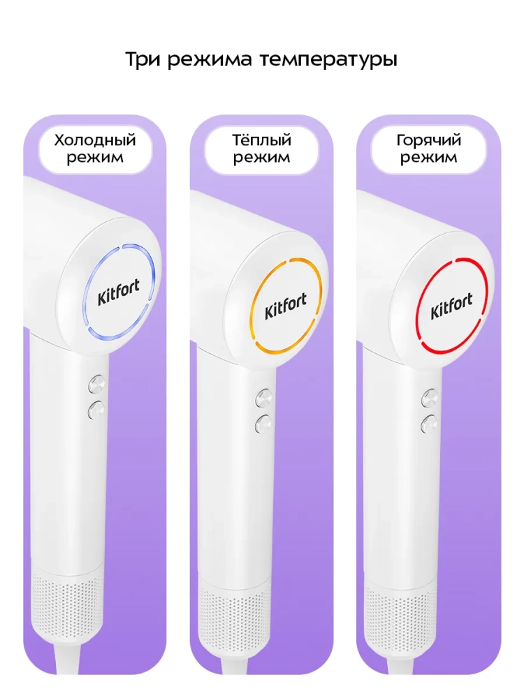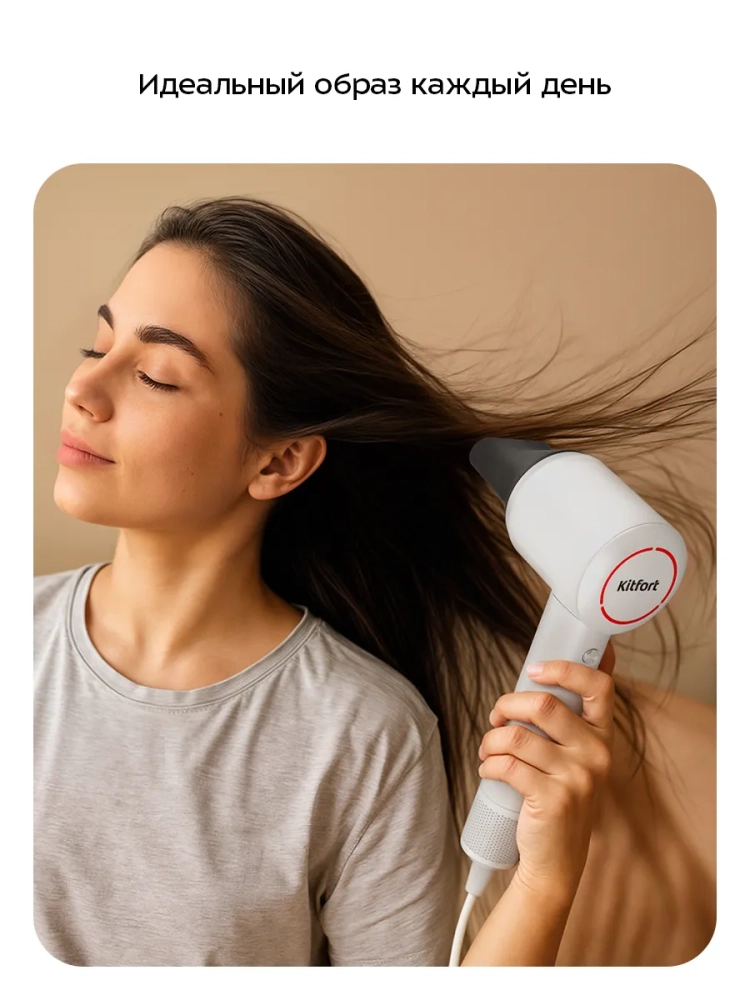 С помощью фена Kitfort КТ-3295 вы можете быстро высушить волосы. Благодаря насадке-концентратору, которая вращается на 360°, поток воздуха можно направить под нужным углом, чтобы сделать укладку без лишних усилий. Благодаря магнитам насадка-концентратор легко закрепляется на устройстве, примагничиваясь к соплу фена.