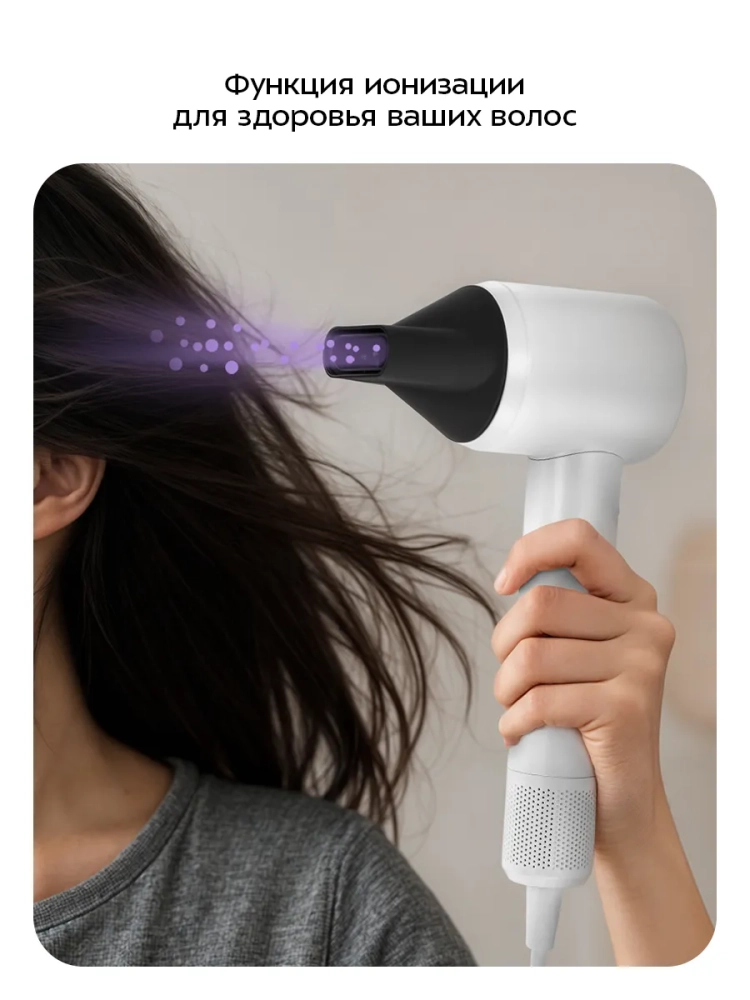 Система контроля температуры в реальном времени позволяет точно регулировать температуру воздушного потока на выходе из сопла, а также предотвращает перегрев устройства. Высокоскоростной бесщеточный мотор мгновенно создает мощный поток воздуха, что позволяет быстро высушить волосы.