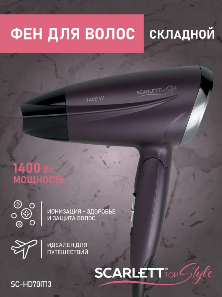 Фен для волос профессиональный складной 1400Вт SC-HD70IT13