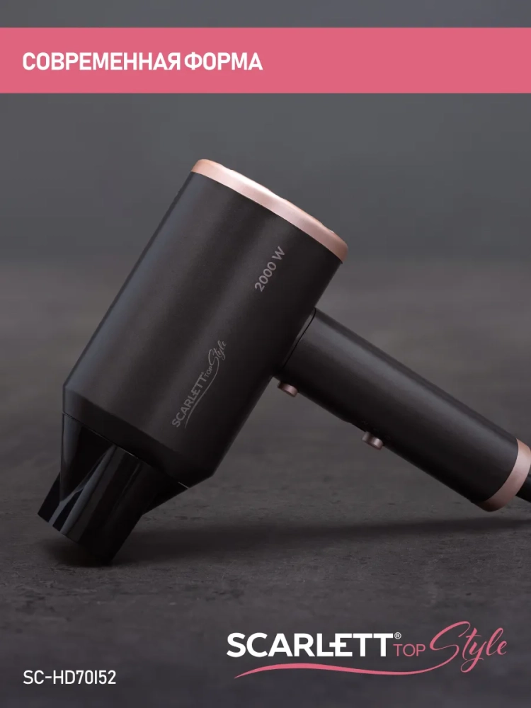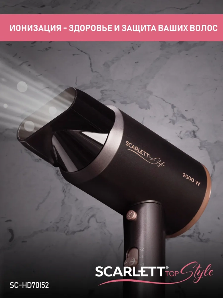 Фен SC-HD70I52 легко справится с укладкой и сушкой всех типов волос. Модель обладает мощным мотором 2000 Вт и удобен в хранении благодаря компактным размерам. Он не займет много места даже в небольшой ванне или вашем чемодане, пока вы путешествуете.