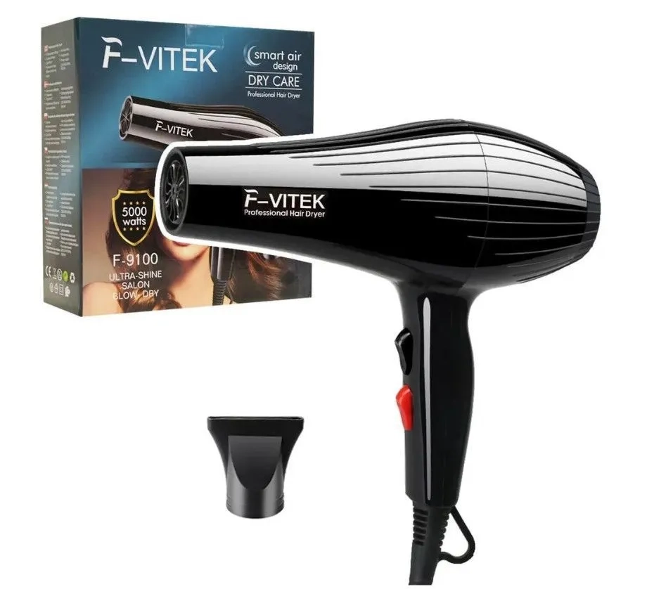 Фен F-Vitek F-9300 мощностью 2200 Вт позволяет быстро сушить волосы с насадками оснащен новейшими технологиями: сетчатый съемный стальной фильтр, мощный электрический двигатель, термостат, который защищает фен от перегревания.3 режима нагрева и 2 скорости подачи воздушного потока. Насадки-концентраторы позволят экспериментировать в создании новых оригинальных причесок. Отверстие насадки-концентратора 20 мм обеспечивает мощный воздушный поток, направленный на определенную прядь. Используйте эту насадку для создания укладки с помощью фена и брашинга. Прибор имеет 6 режимов температуры и скорости воздушного потока, чтобы любой пользователь мог настроить параметры сушки под себя.Удобство использования благодаря шнуру питания длиной 1,8 м. Функция холодного обдува используется каждым профессиональным парикмахером. Кнопка холодного обдува Cool Shot обеспечивает подачу мощного потока холодного воздуха. Этот прием используется для закрепления укладки. У основания ручки находится прорезиненная петелька, благодаря которой прибор удобно хранить как дома, так и в отеле.