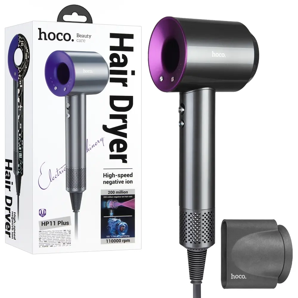 Фен HP11 Plus 1.8м 1600Вт 2 насадки 3 режима HOCO фиолетовый