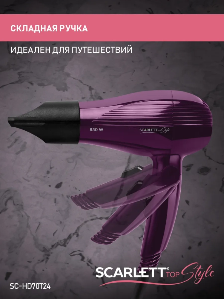 Компактный, удобный в использовании фен с узким концентратором для сушки и укладки волос.Удобный и красивый.Два режима работы, складная ручка, удобное хранение, съёмная защитная решётка для легкой очистки устройства от попавшей в фен пыли.