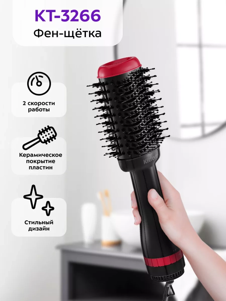 Фен-щетка для волос КТ-3266 - 2 скорости - 3 режима