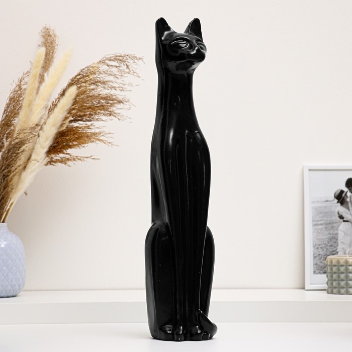 Фигура "Кошка Египетская №1" большая черная глянцевая 10х11х45см