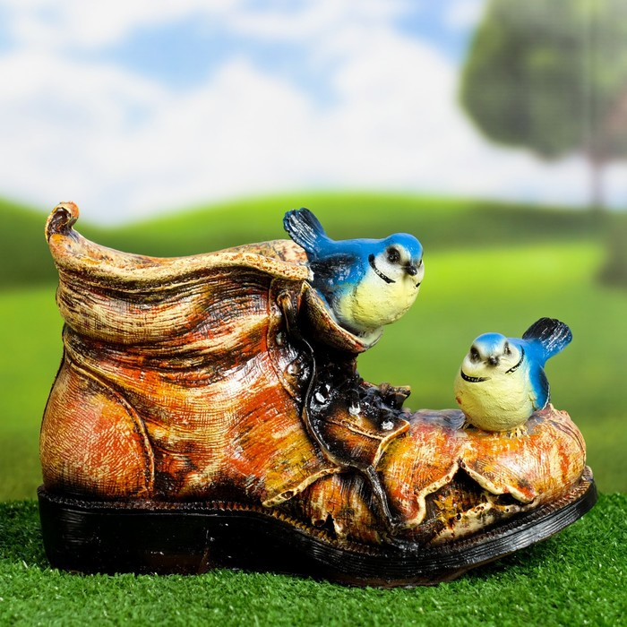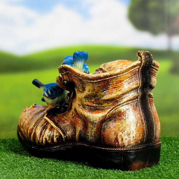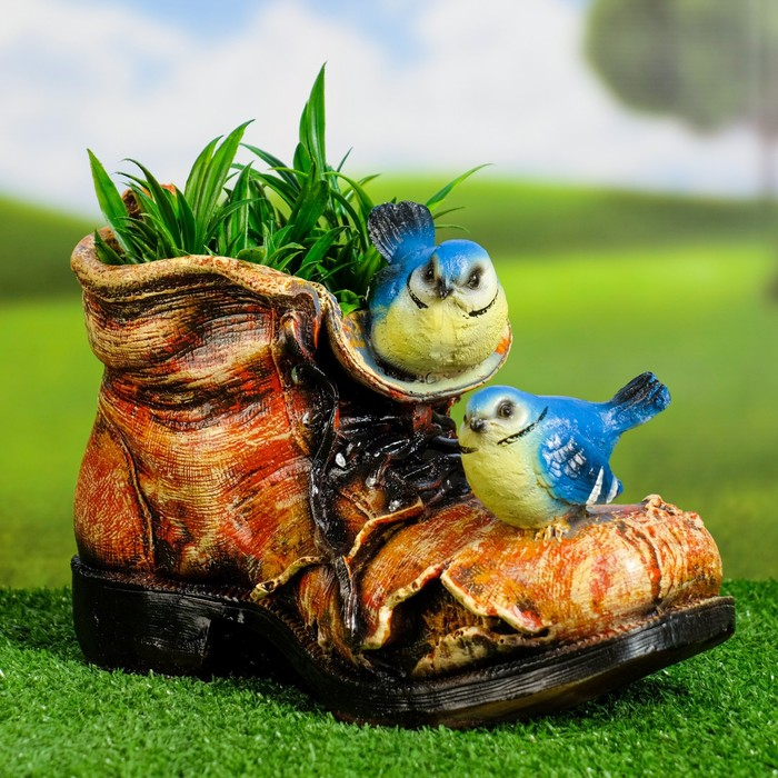 Фигурное кашпо "Ботинок с двумя птичками" 18х14см