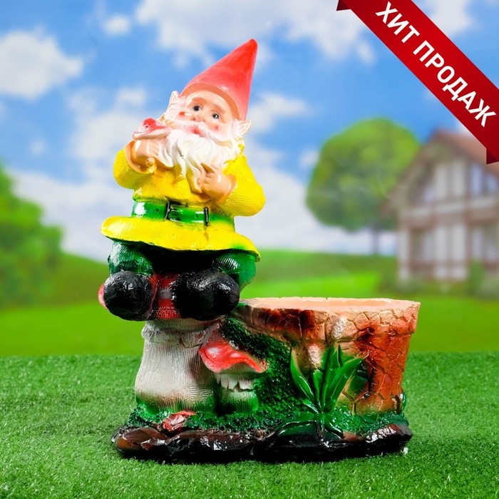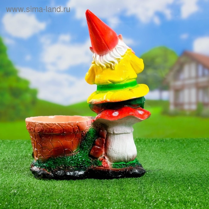 Фигурное кашпо "Гном на мухоморах"