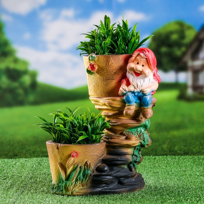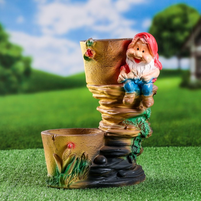 Фигурное кашпо "Гном с двумя кашпо" 20х24х30см
