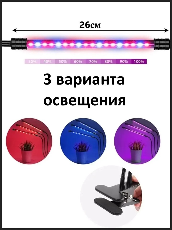 Светодиодный светильник для растений фитолампа используется для ускорения роста и развития растений в домашних условиях. Фитосветильник полностью заменяет солнечный свет и эффективен на всех этапах роста комнатных растений. Светодиодная лампа для растений абсолютна безопасна. Лампа для растений имеет правильно подобранный полный спектр, что позволяет выращивать комнатные растения даже при полном отсутствии света. Фитолампа для растений имеет 3+1 режима авто вкл/откл по таймеру. Удобная система крепления и регулировки с углом поворота 360 градусов. Лампа для рассады имеет длительный срок эксплуатации до 50000 часов. Светильник для растений имеет универсальное USB подключение к любому устройству. Потребляемая мощность 20Вт. Диапазон рабочих температур от 0 до + 40 С. Свет от светильника направляется в любом направлении, можно размещать сбоку от растения, что удобно для подсвечивания растений более 1 метра в высоту. Высота 65 см. Лампы не требуют замены на протяжении всего срока службы.