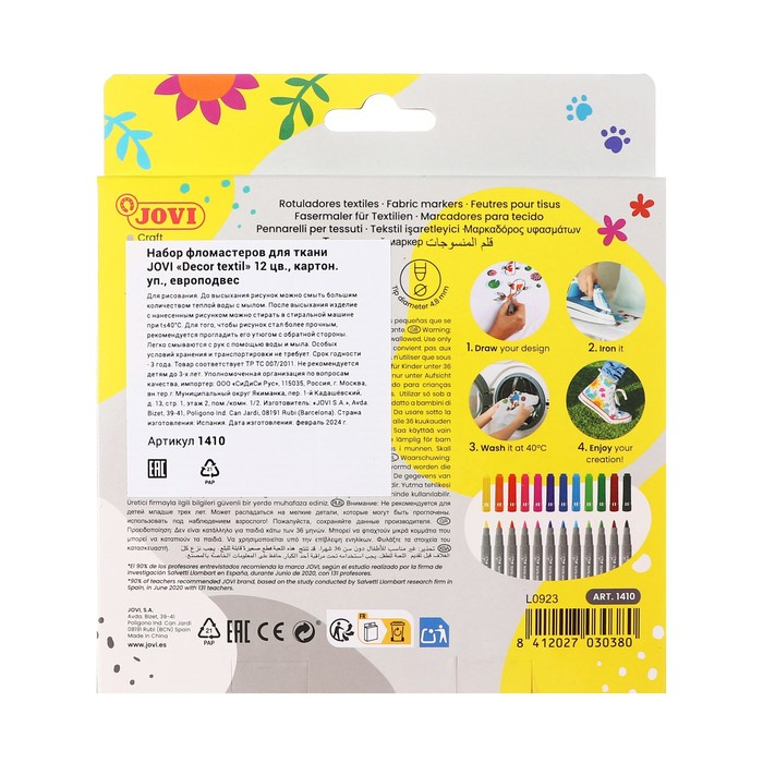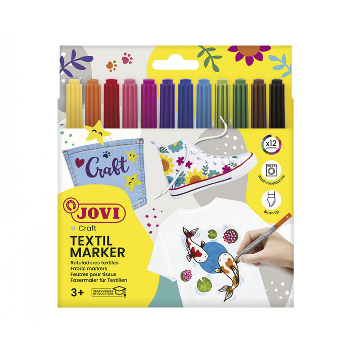 Фломастеры для ткани 12 цветов, JOVI, европодвес