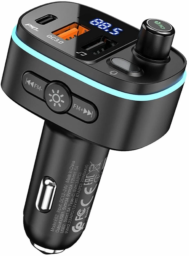 E62 Fast — это автомобильный FM-трансмиттер от производителя Hoco. Он оснащён двумя USB-интерфейсами и USB Type-C, что позволяет одновременно заряжать два устройства с поддержкой быстрой зарядки PD20W и QC3.0. Это обеспечивает быструю и безопасную зарядку ваших гаджетов.