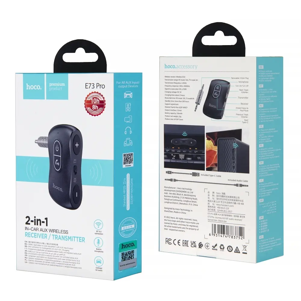 *FM Модулятор + ресивер E73 Pro HOCO черный