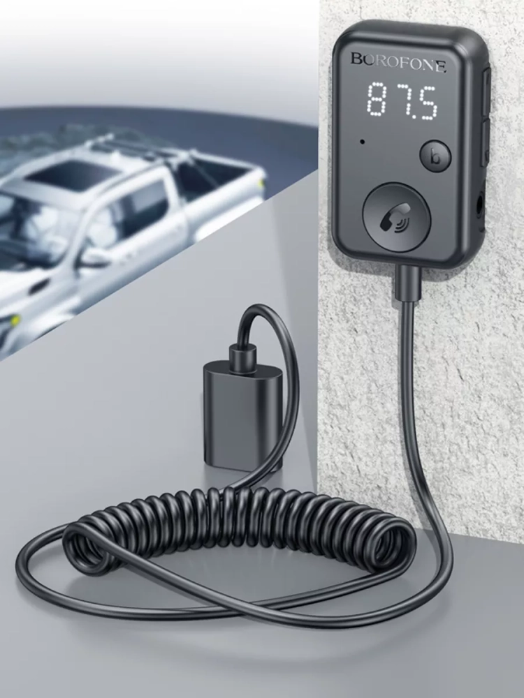 FM трансмиттер Borofone BC49 June - отличное устройство для автомобиля, позволяющее наслаждаться музыкой, а также использовать в качестве гарнитуры для комфортной связи. Благодаря подключению через USB и наличию выходного интерфейса AUX 3.5 у вас всегда будет широкий спектр вариантов для подключения.