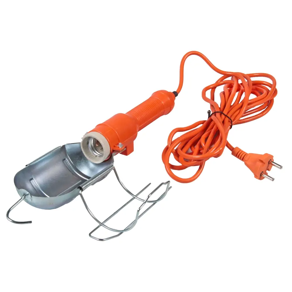 Классическая модель фонаря - переноски. Выключатель питания, металлическая защита лампы, цоколь E27, керамический патрон.