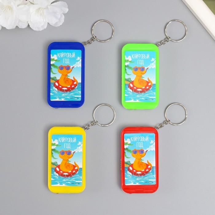 Фонарик на кольце "Змей в очках - Кайфовый год" 6,5х3,5х1 см, МИКС