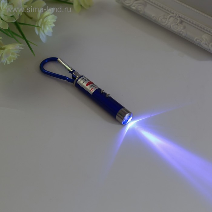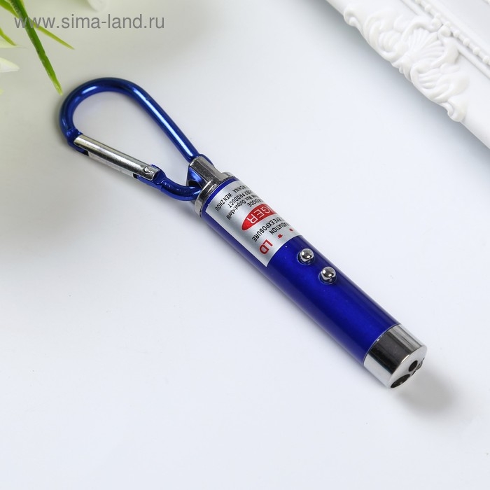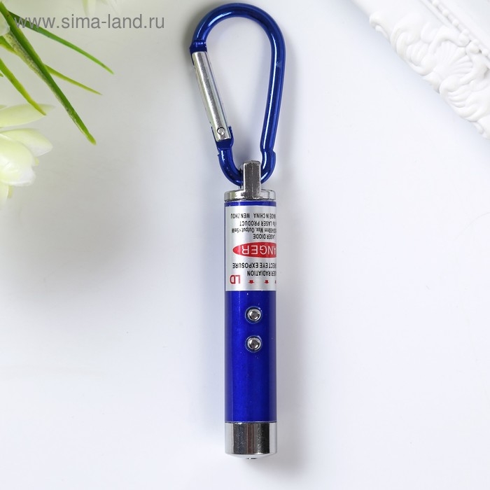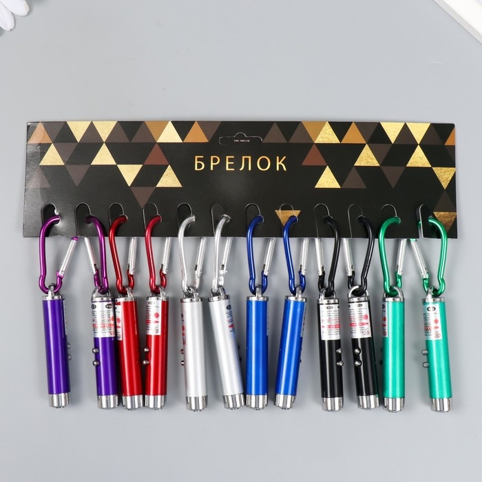 Фонарик+лазер на карабине 2 режима "Металлик" МИКС 9,2х1,3х1,3 см