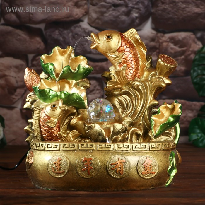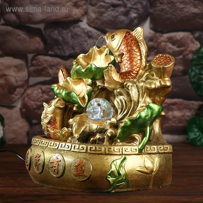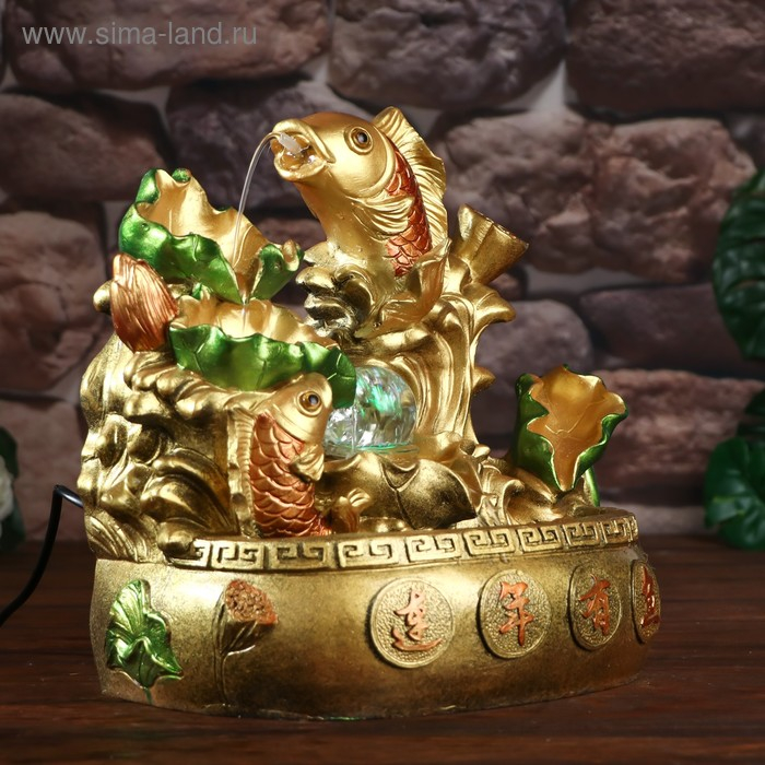Фонтан настольный от сети, подсветка "Золотые карпы" 31х29,5х20 см