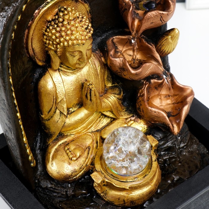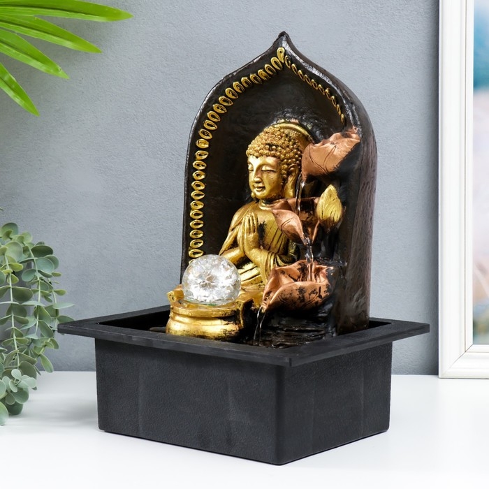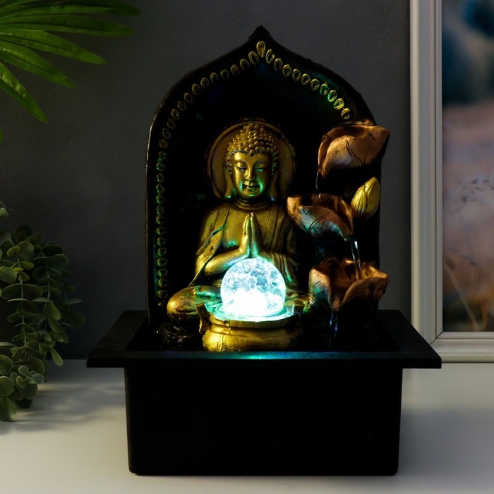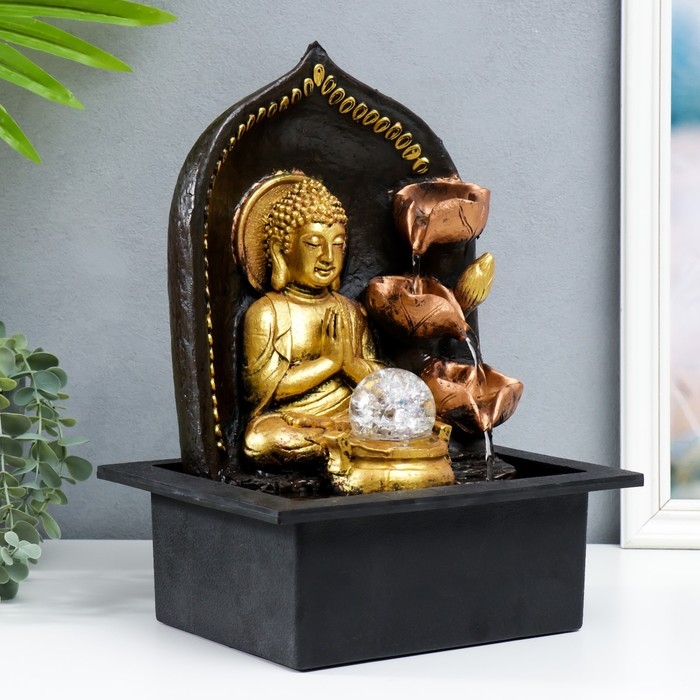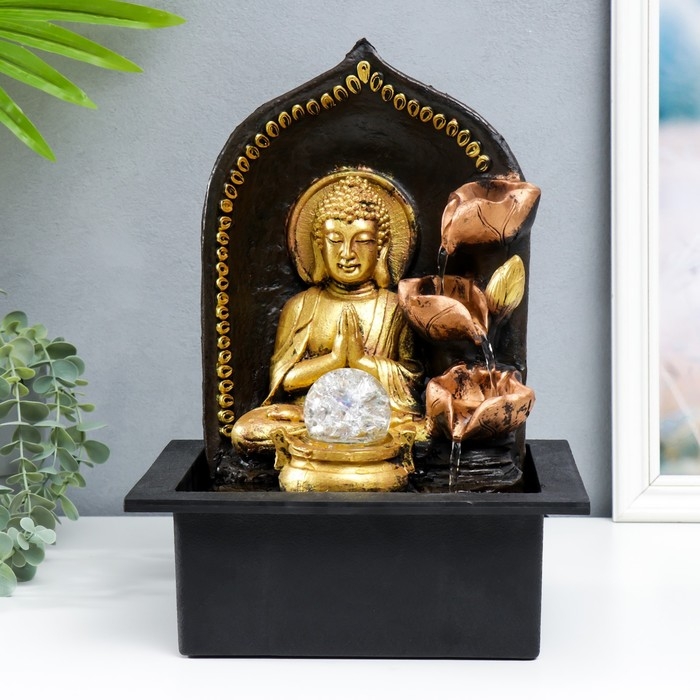 Фонтан настольный от сети "Верховный Будда у фонтана" золото 35х25х20 см