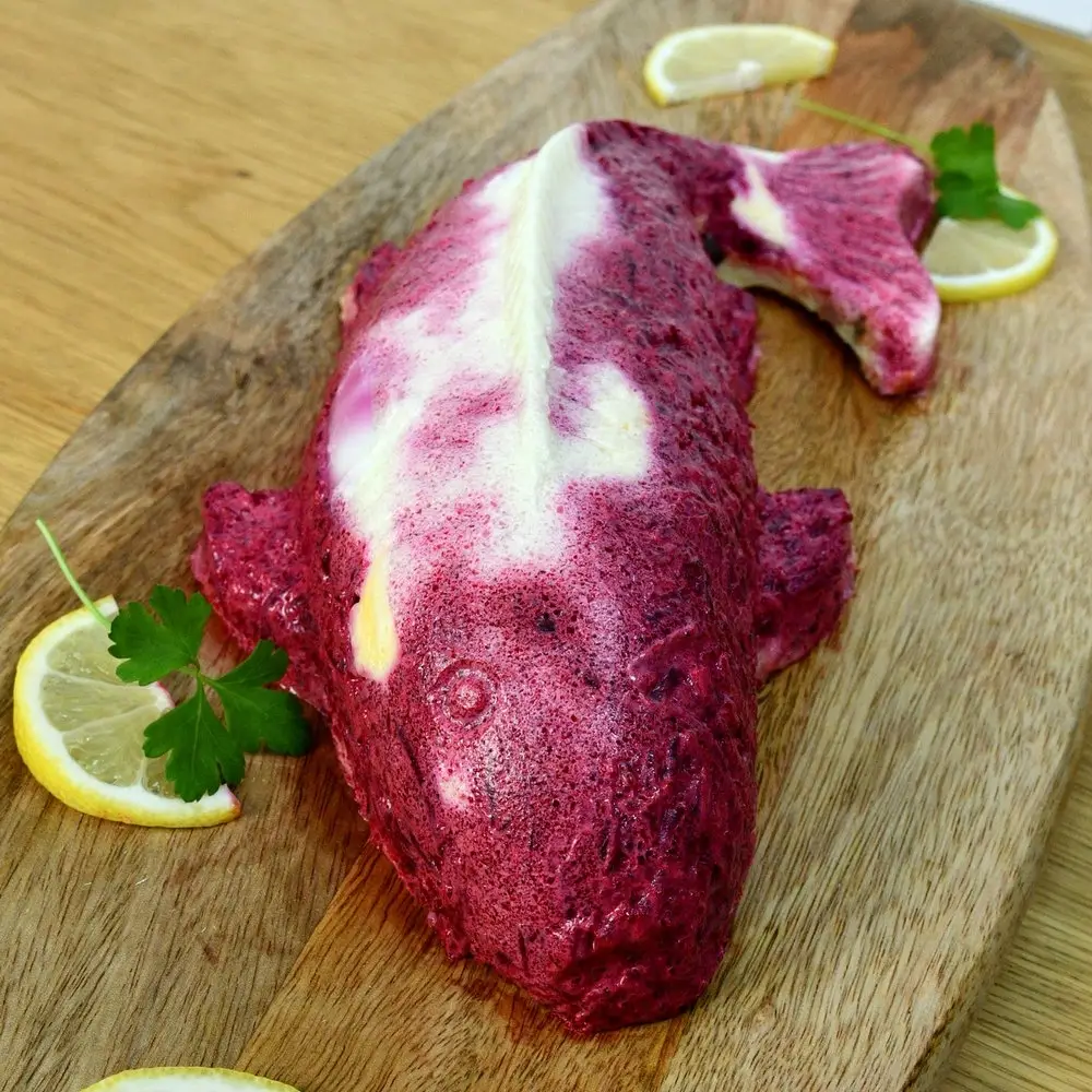 Удивите своих гостей и близких оригинальной подачей привычного салата или заливного! Воспользуйтесь для приготовления формой для салата в форме рыбы!
