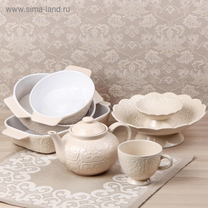 Форма для выпечки из жаропрочной керамики Доляна «Орнамент», 28×16,7×6 см, 1 л, цвет белый