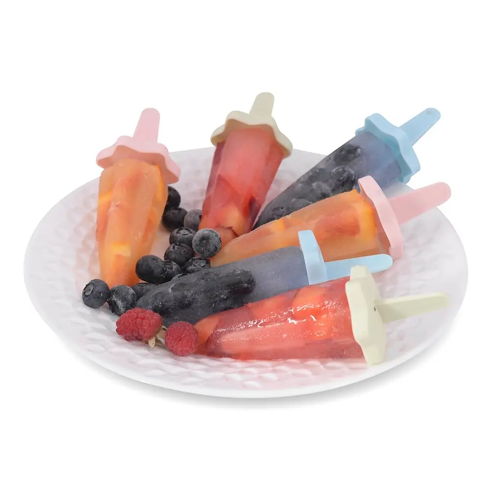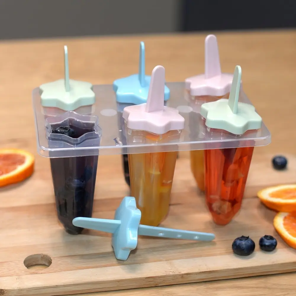 Домашний фруктовый лед или молочное, йогуртовое мороженое – это не только вкусное, но и полезное лакомство. Смешивайте любимые вкусы, фантазируйте, устраивайте эксперименты и радуйте своих близких угощением с формами для мороженого «Звездопад». Формы позволяют одновременно приготовить 6 порции освежающего десерта. Формы выполнены в оригинальном дизайне, крышки-палочки удобно держать в руках. Сама форма продумана так, чтобы мороженое было легко доставать. Перед первым использованием и после каждого применения вымыть губкой с жидким моющим средством, сполоснуть проточной водой и просушить. Можно мыть в посудомоечной машине.