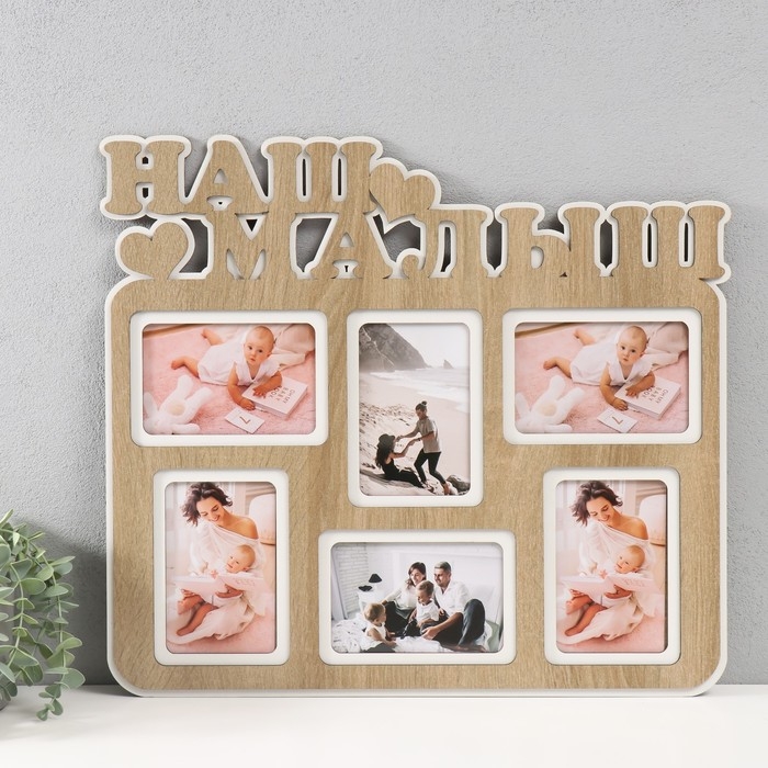 Фоторамка ЛХДФ "Наш малыш" 46х51 на 6 фото 10x15 см, цв. дуб/белый (пластиковый экран)