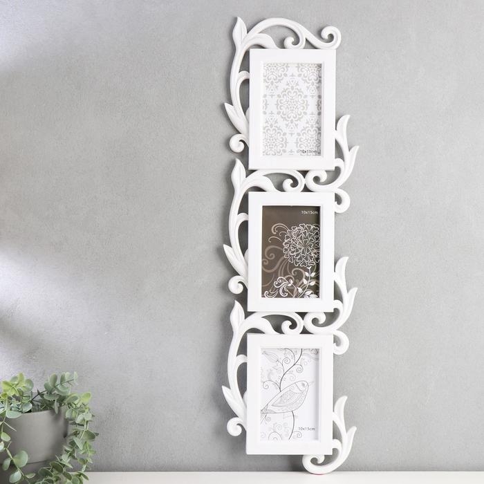 Фоторамка на 3 фото 10х15 см "Ростки" белая 67,5х19,5х2 см
