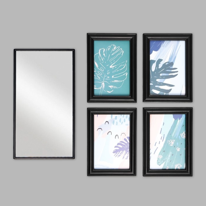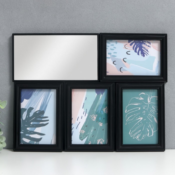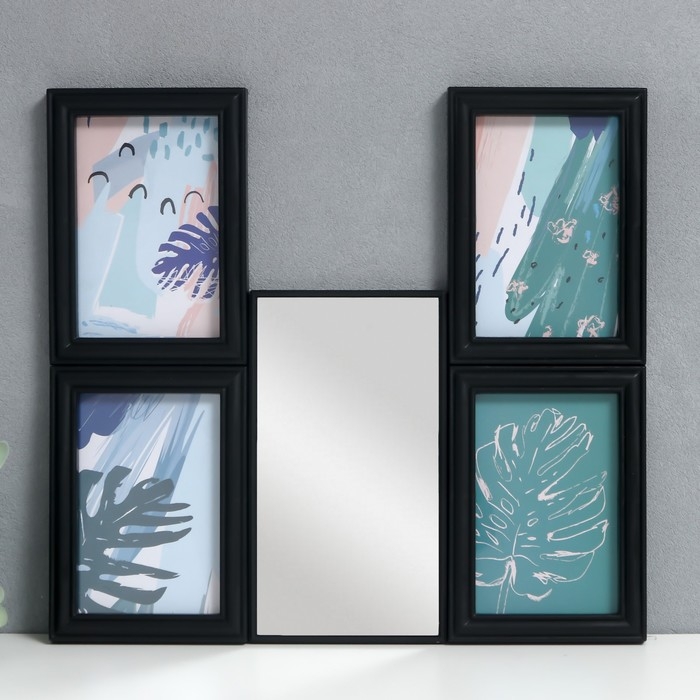 Фоторамка на 4 фото 10х15 см+зеркало "Отражение" чёрная набор 5 шт 31х41 см