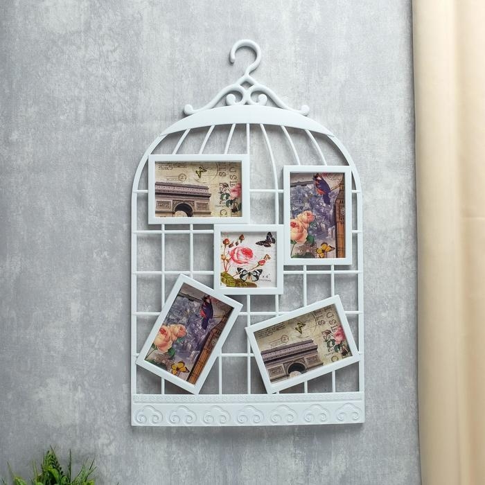 Фоторамка на 5 фото 10х10 см, 10х15 см "Клетка" белая 64х38 см