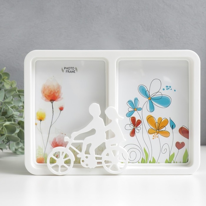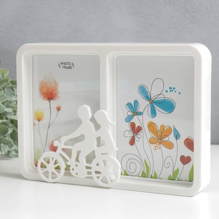 Фоторамка пластик 10х15 см на 2 фото "Пара на велосипеде" белая 3х23х6,5 см
