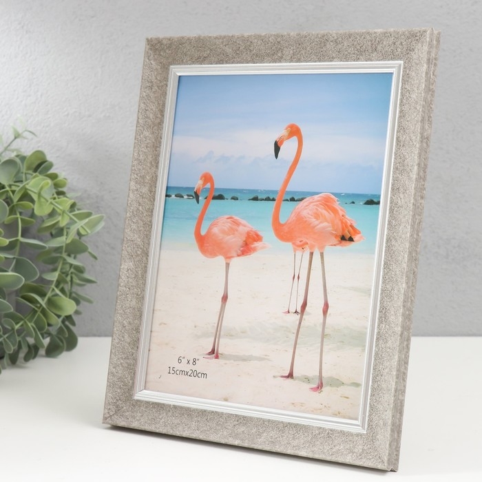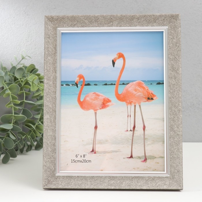 Фоторамка пластик 15х20 см "Серая мраморная крошка" серебристая обводка 24х19 см