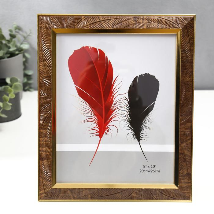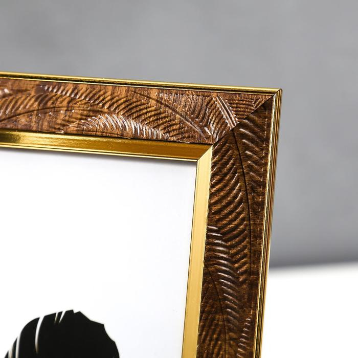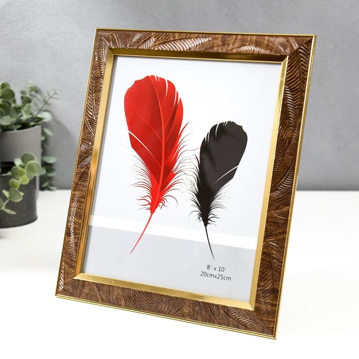 Фоторамка пластик 20х25 см "Листья на шоколаде, золотая двойная рамка" 29,7х25 см